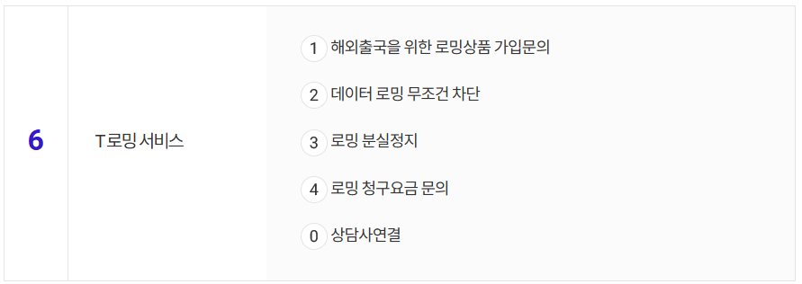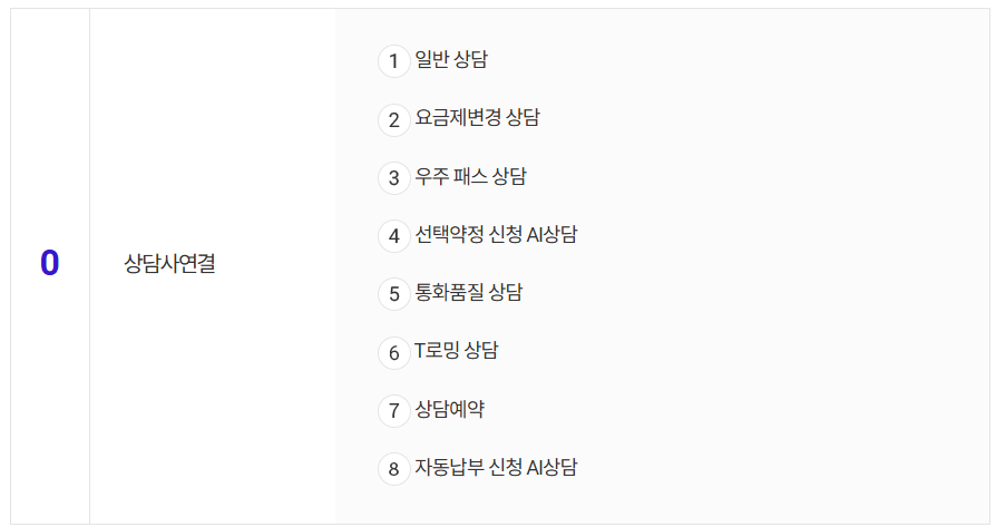 - 1번 → 0번 → 0번 (모바일 서비스 → 상담사 연결)