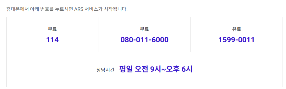 | 구분 | 전화번호 | 이용 가능 시간 | 비고 |